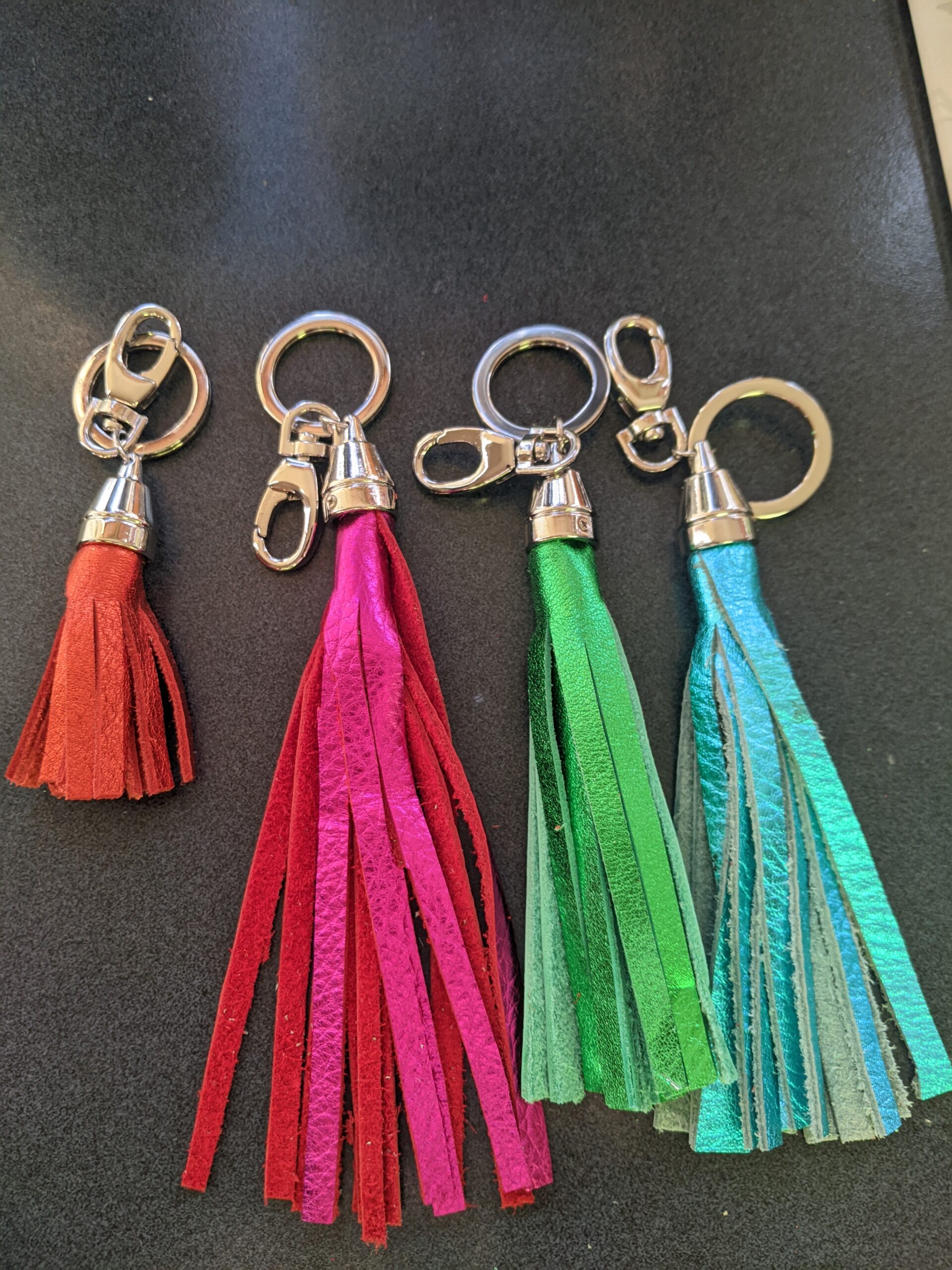 Key Ring Tassel Cap is the newest accessory to add to your sporran, belt, purse, backpack…practically anywhere you want to clip it. Colorful leather, sturdy keyring cap and good looking hardware. Be the first to tout one! Tassel is approximately 4″ with a little less or little more fringe depending on how the leather moves. As the Picts, Vikings and Celts know…it is all in the accessories.